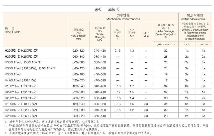 1. 鋼板及鋼帶的力學(xué)性能和鍍層附著性應(yīng)符合表4、表5、表6中的規(guī)定。
