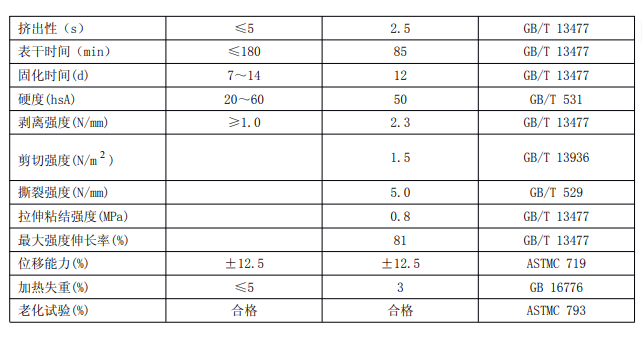 按我國(guó)標(biāo)準(zhǔn),聚硫密封膠性能應(yīng)符合表 1 的要求