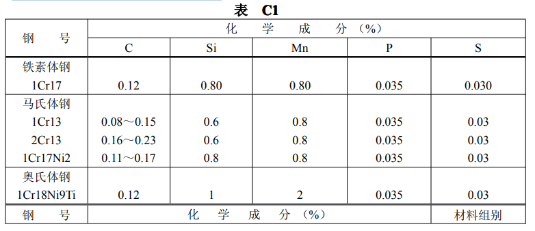 C.1 本附錄給出了可用于緊固件的不銹鋼材料牌號(hào)及化學(xué)成分,供設(shè)計(jì)和生產(chǎn)中參考。